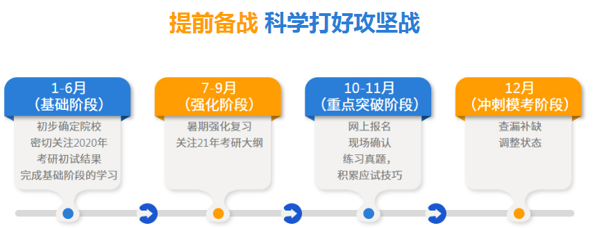 从一月初到考试之前:这段时间调整心态很重要,一定要保证好充足的睡眠。适当的时候可以看看书和以前做过的题目。最后,除了坚持还有一点也是非常重要的,在整个个考研复习中,必须要有好的心态和愉悦的心情,这样有助于复习效果的提升。整个考研备战就是按照这这几个步骤来的,最终一定考上硕士研究生,希望这个计划也能够给即将考研以及打算考研的同学一点启示。