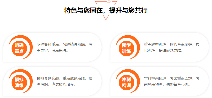 从学科框架开始构建,从学科较基础的内容讲起,到高频高难考点精练、试题精讲,通讲解题技巧、提升解题速度、最后到考前点拨。