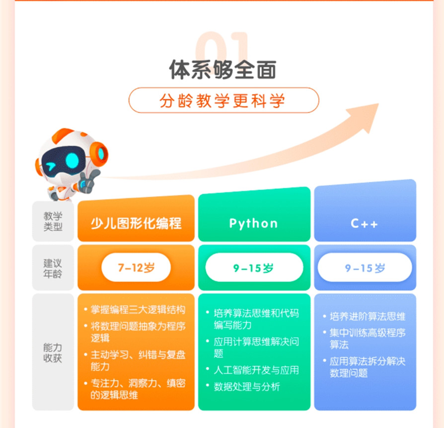 从3到18岁课程,体系完整,接轨未来最新科技,培养未来人才